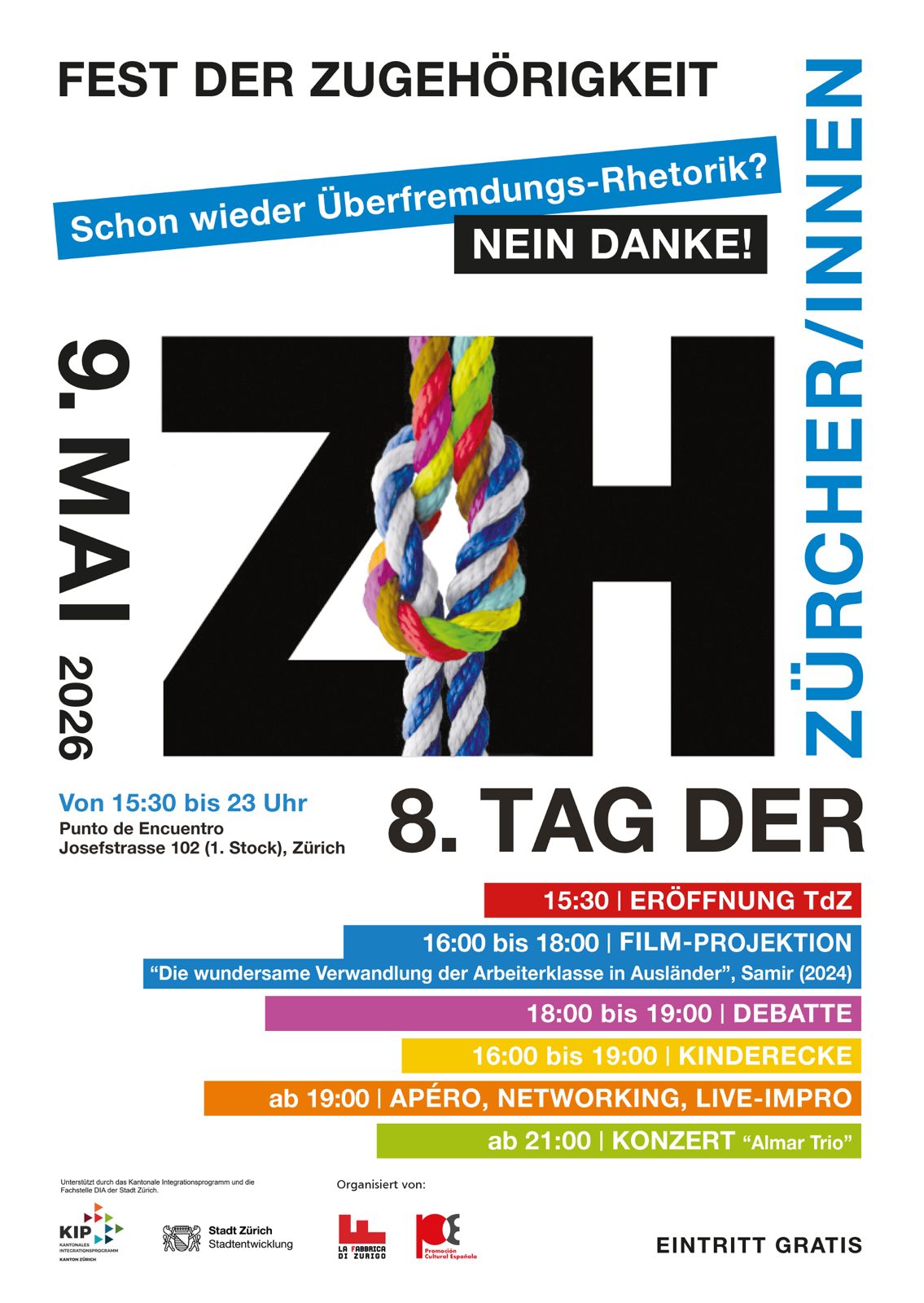 Der Tag der Zürcher:innen entstand aus der Überzeugung, dass die Zugehörigkeit zu einer Stadt nicht durch ein Dokument, sondern durch den täglichen Beitrag und den Wunsch nach einer gemeinsamen Zukunft definiert wird. In diesem Jahr ist unsere Feier nicht nur ein Moment der Begegnung, sondern ein Zeichen des zivilen Widerstands gegen eine Rhetorik, die die Schweiz zyklisch in ein „Wir“ und die „Anderen“ zu spalten versucht.