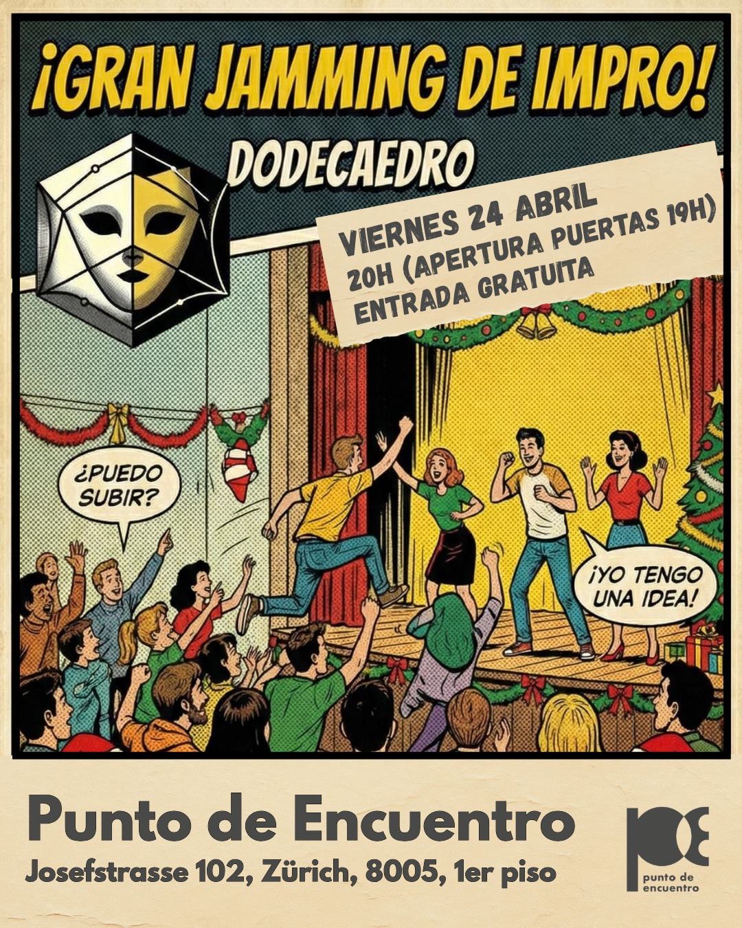 📍 The event will be hosted on April 30th as always at “Punto de Encuentro" (Josefstrasse 102, 8005 Zürich) at 18:30.